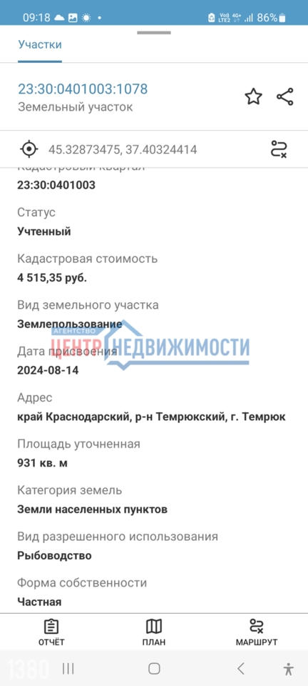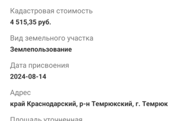 Площадь участка :